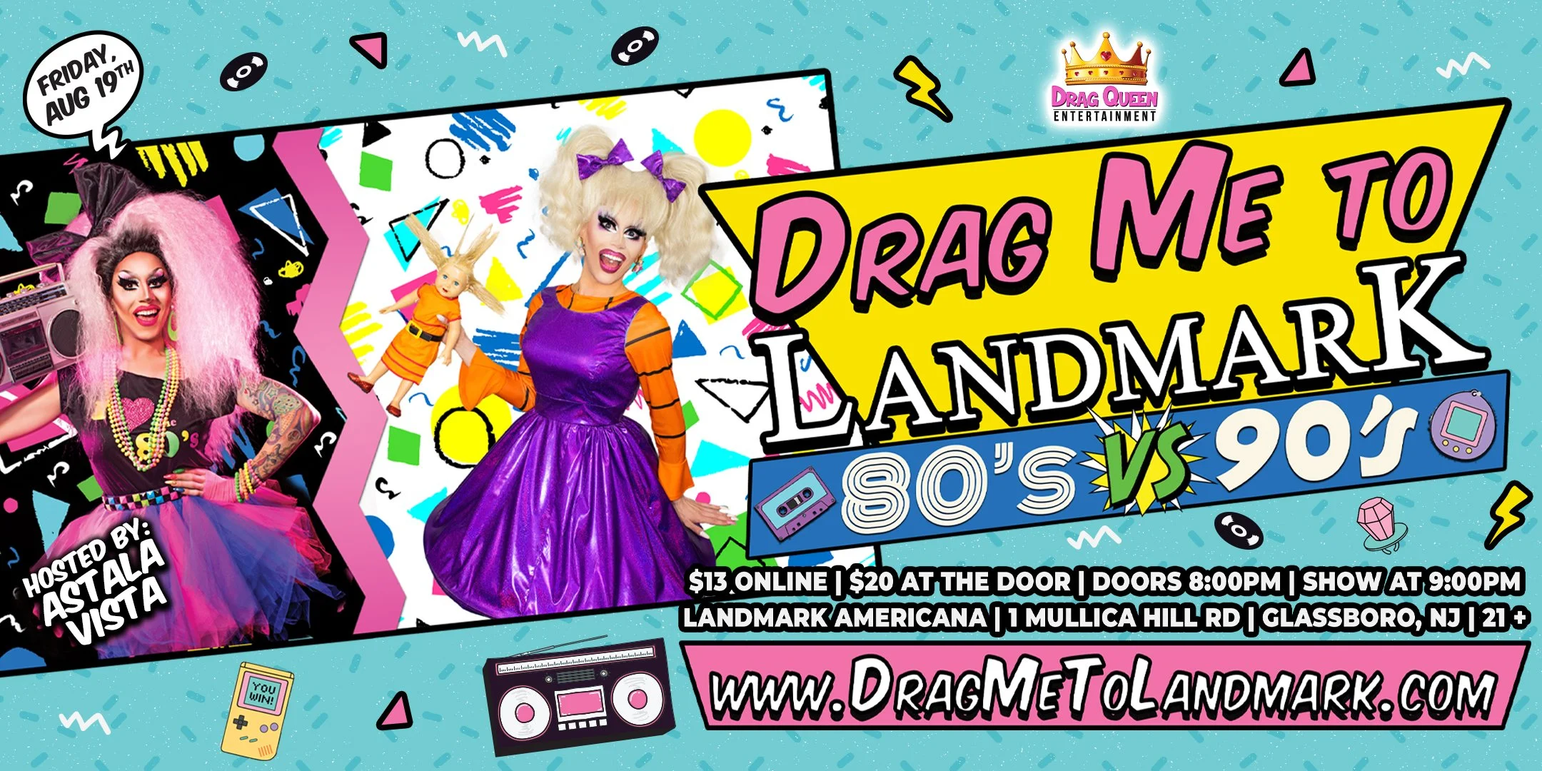 On Friday, August 19th, get ready to relive all of your Childhood Nostalgia at our Drag Me To Landmark - 80's VS. 90's Drag Show! Join us for a night of performances inspired by your favorite Pop Stars, Toy's & Iconic Moments from the 80's and the 90's!